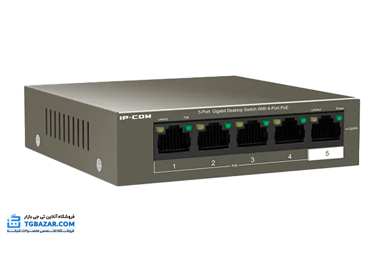 سوییچ G1105P-4-63W آی پی کام از تولیدات IP-COM با 5 پورت گیگابیتی است که پورت های 1 تا 4 آن دارای قابلیت PoE با پشتیبانی از استاندارد IEEE 802.3af/at هستند. توان خروجی هر پورت این سوییچ معادل 30W و توان خروجی کل سوییچ 58W است.